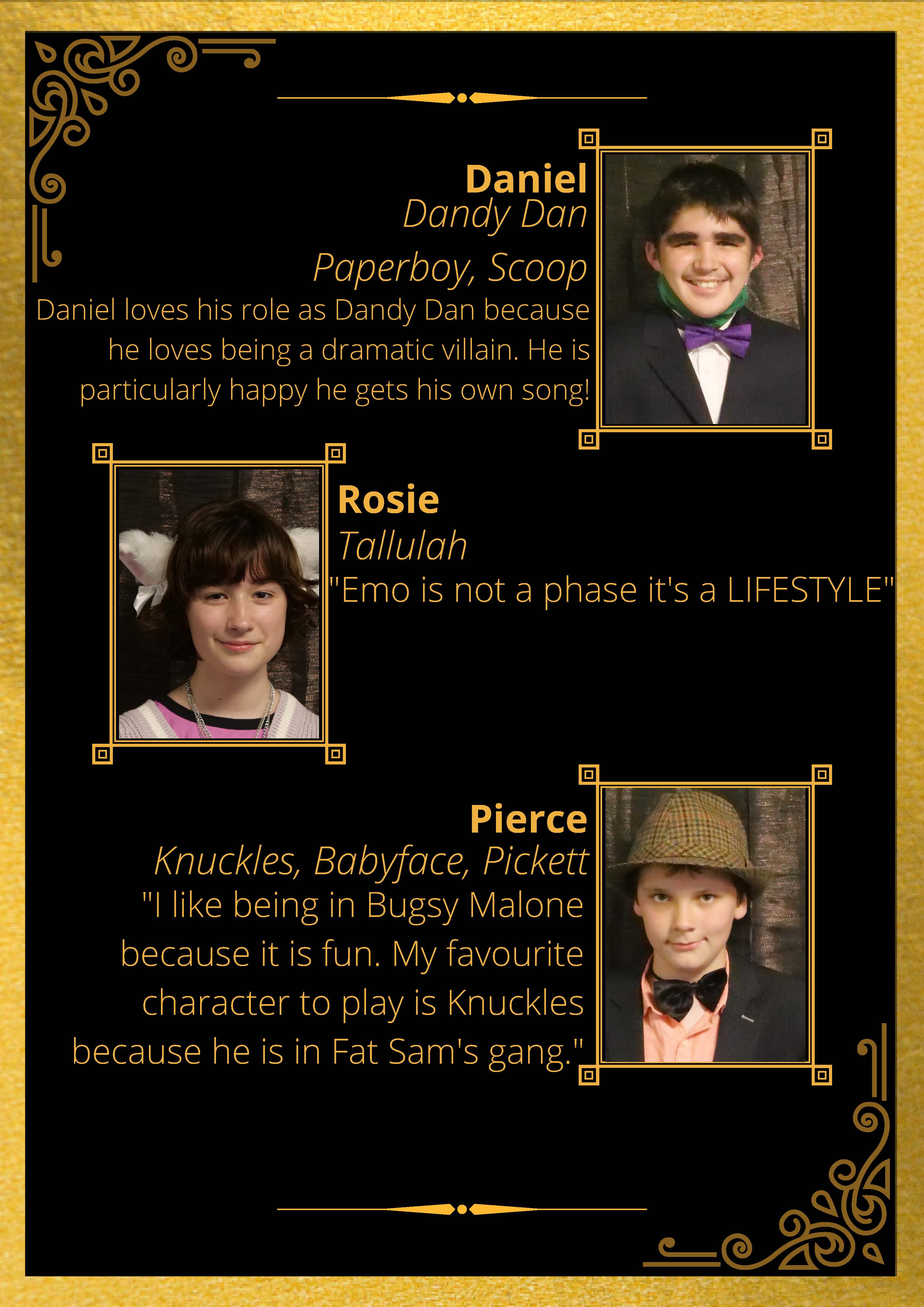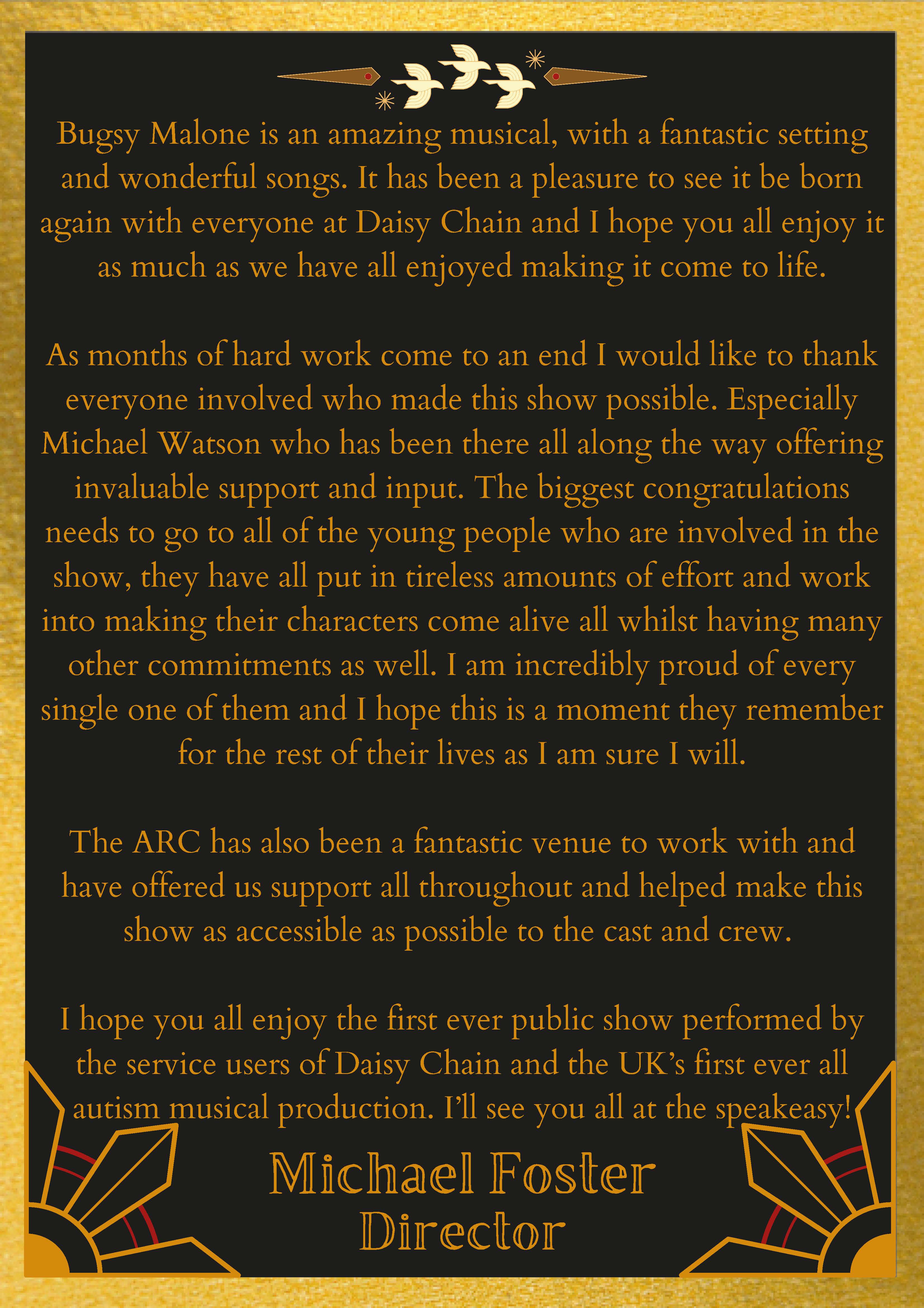 Not only was I the director for Bugsy Malone, I was also the Stage manager, Sound technician, Choreographer, Marketer and Ticketing to name a few.